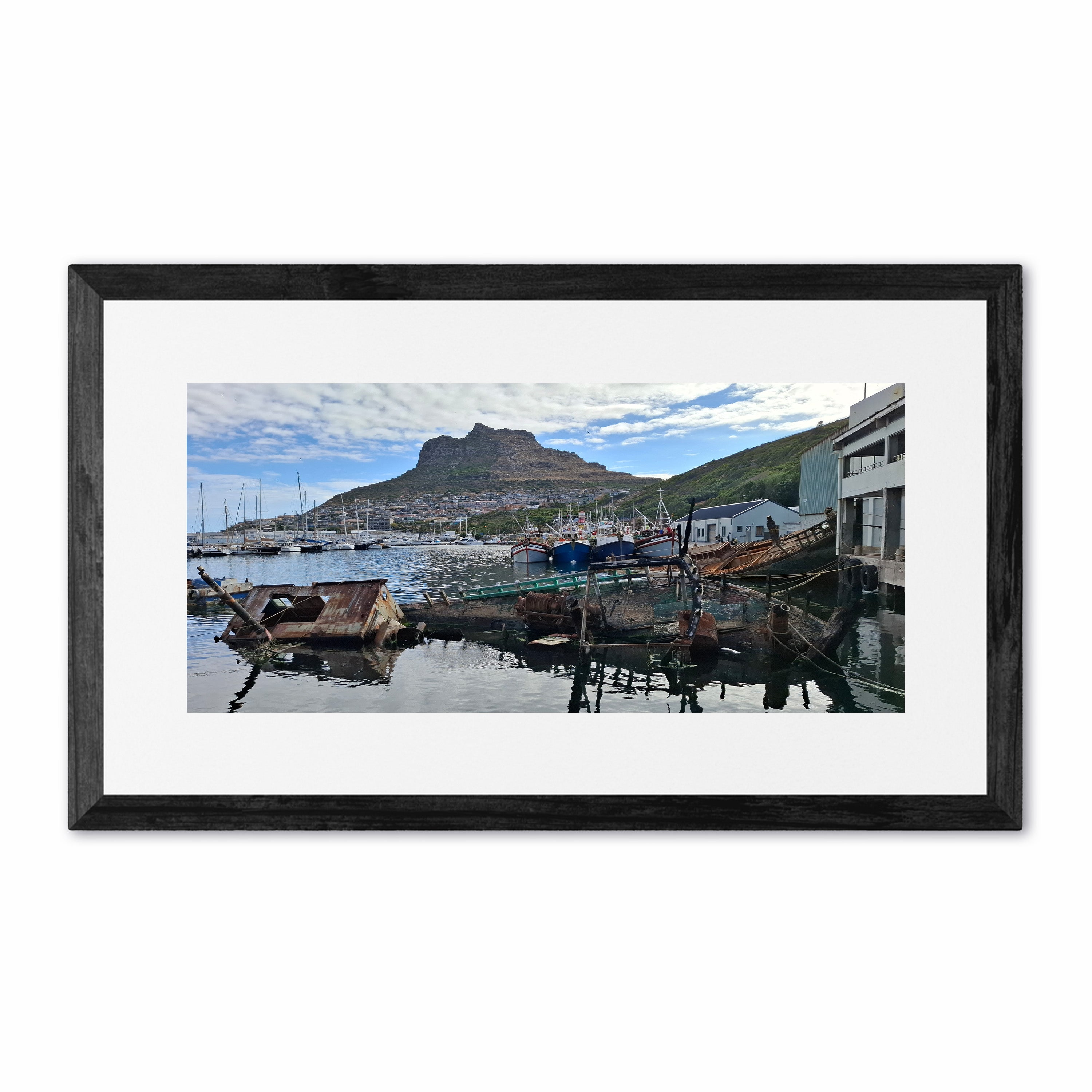 Each print is surrounded by an 80mm white border (mat) and finished with a 35mm frame. This results in the following final framed sizes: