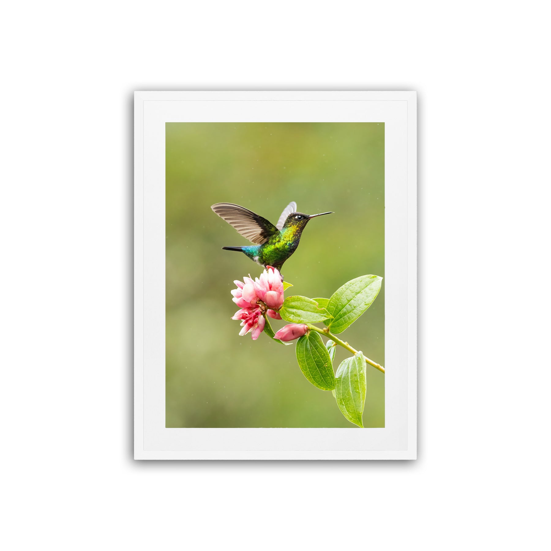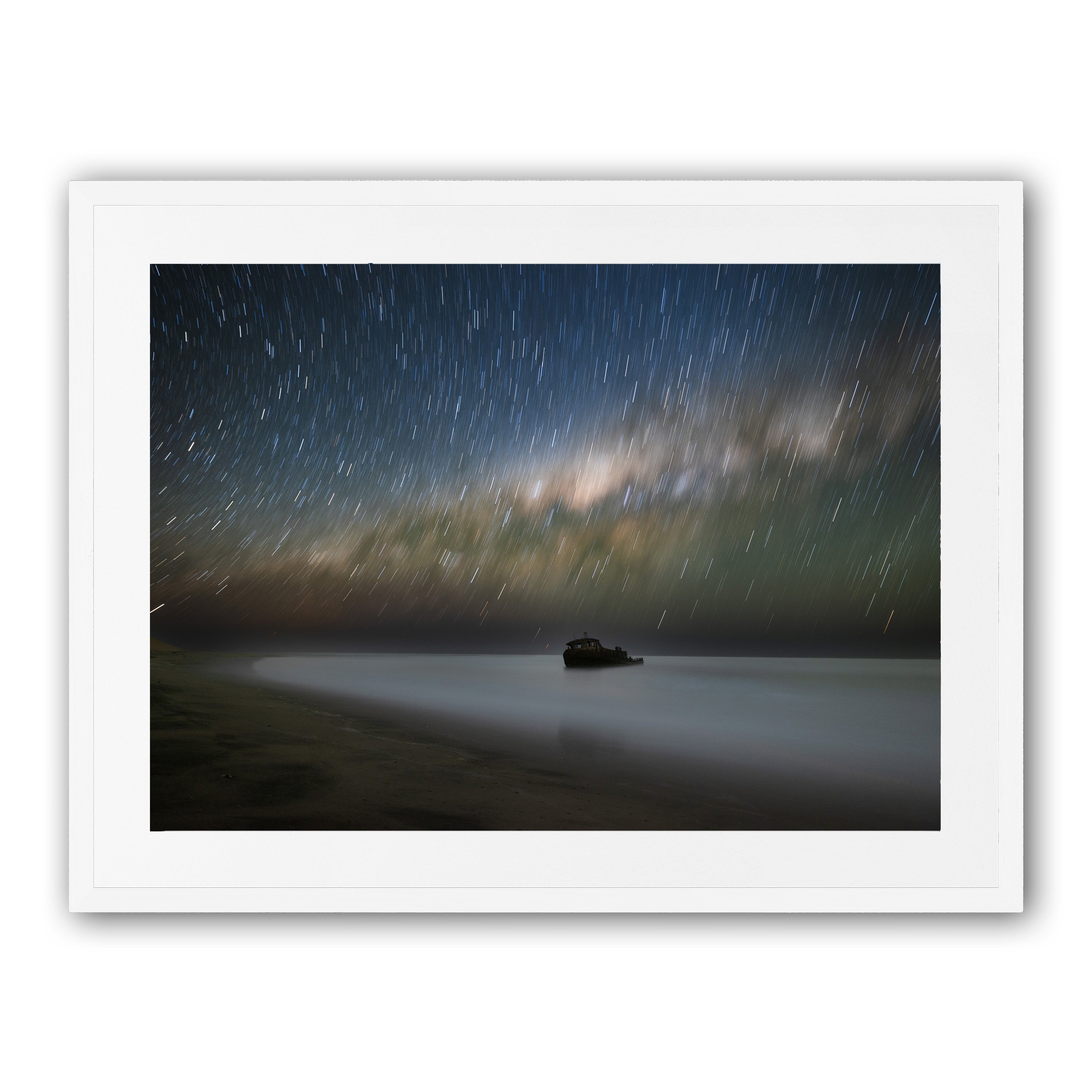 Each print is surrounded by an 80mm white border (mat) and finished with a 35mm frame. This results in the following final framed sizes: