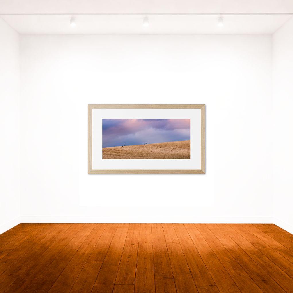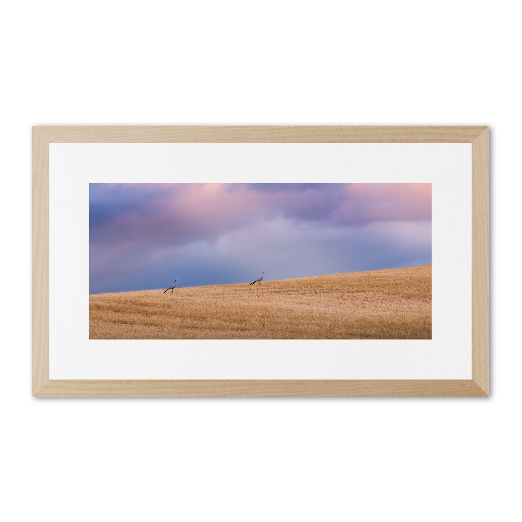 Each print is surrounded by an 80mm white border (mat) and finished with a 35mm frame. This results in the following final framed sizes: