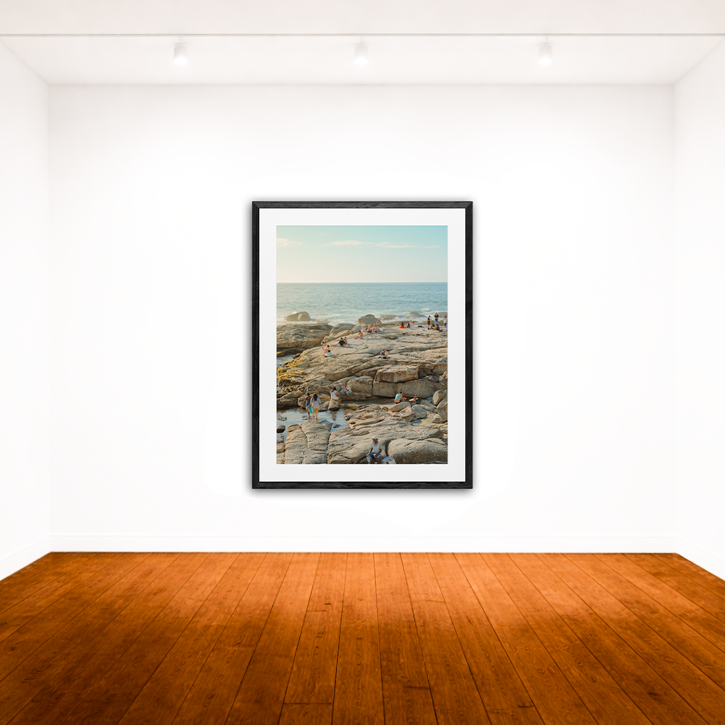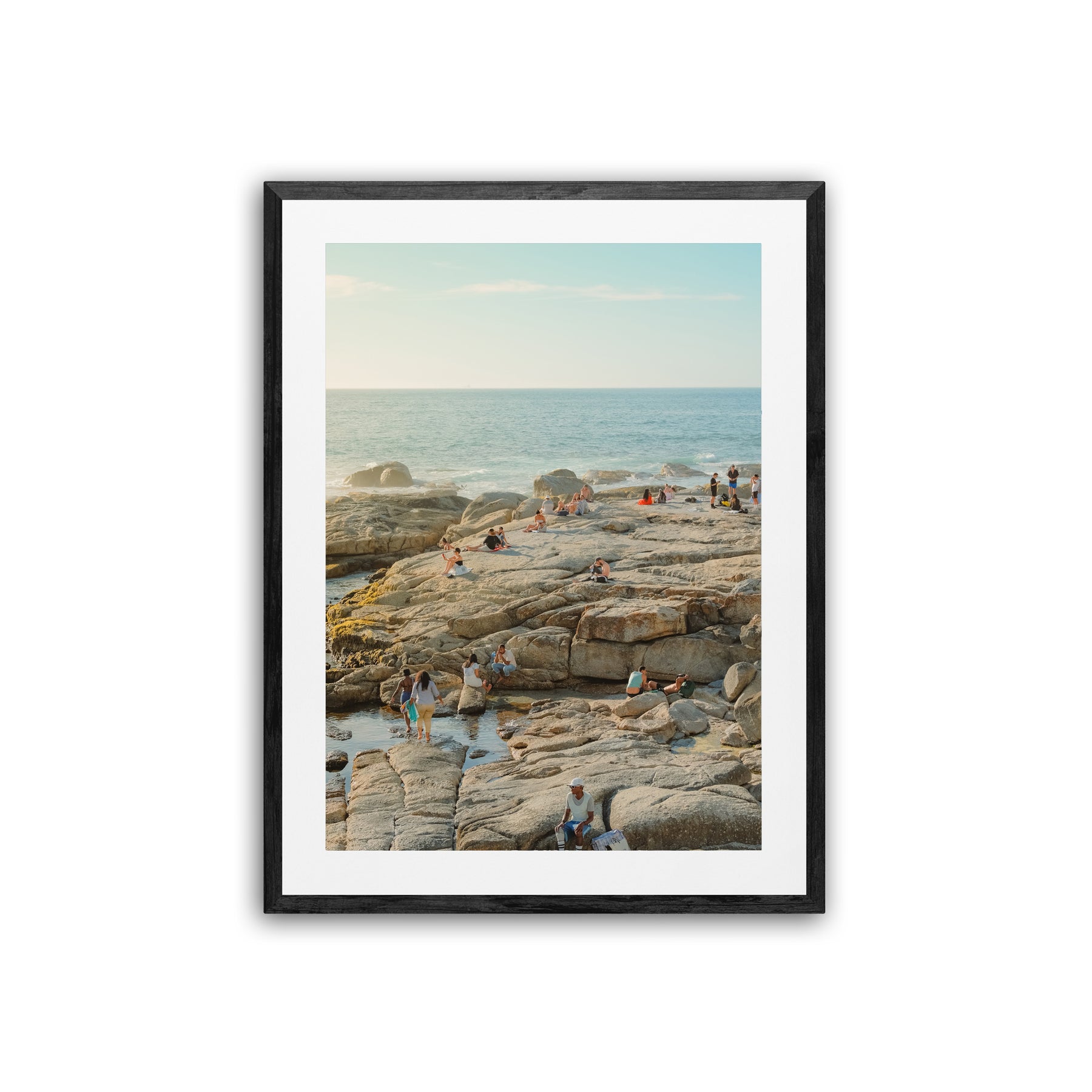 Each print is surrounded by an 80mm white border (mat) and finished with a 35mm frame. This results in the following final framed sizes: